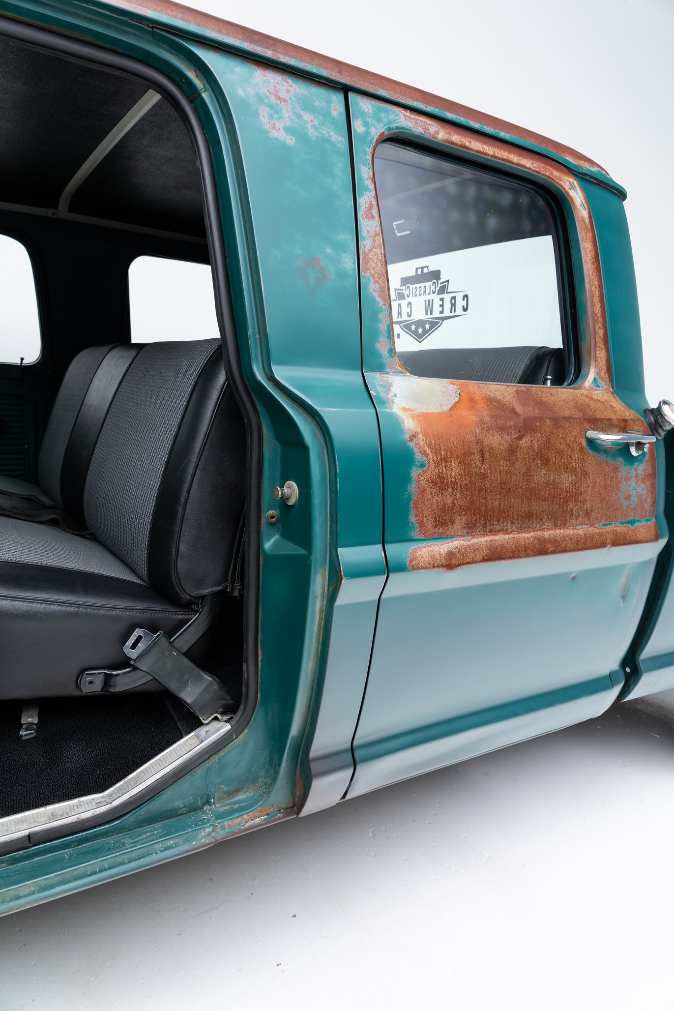 —expertly refreshed by the team at Classic Crew Cabs. It sports a fully rebuilt drive train, short bed, Bluetooth radio plus a fully custom interior and countless new components.