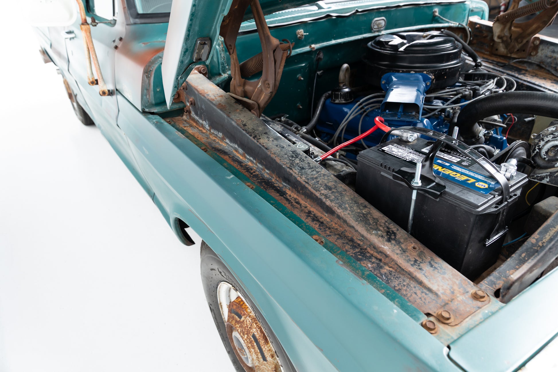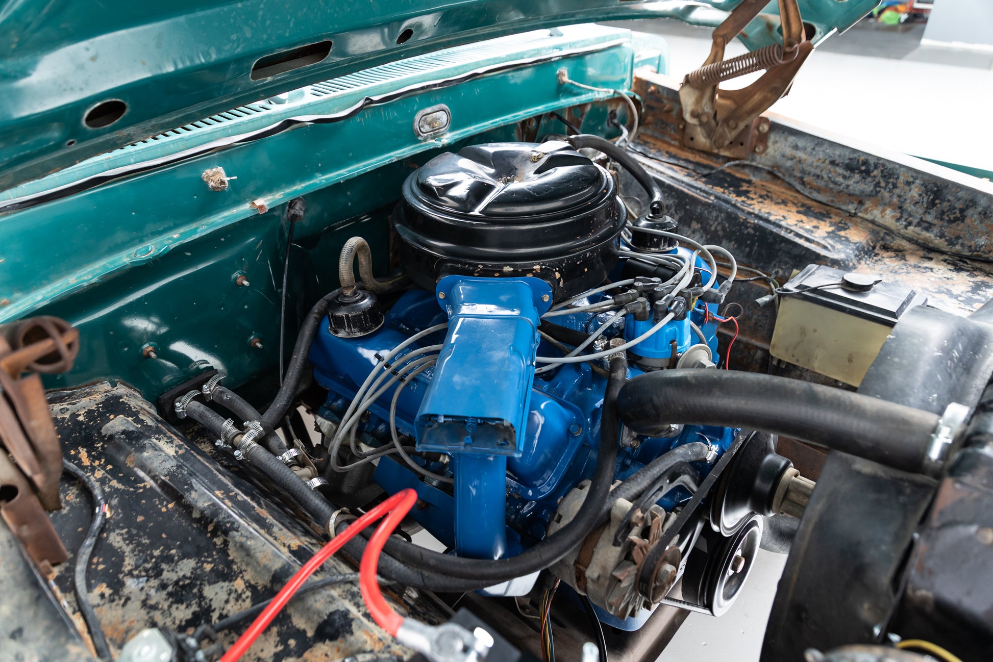 - Brand-new two-piece driveshaft with U-joints & carrier bearing